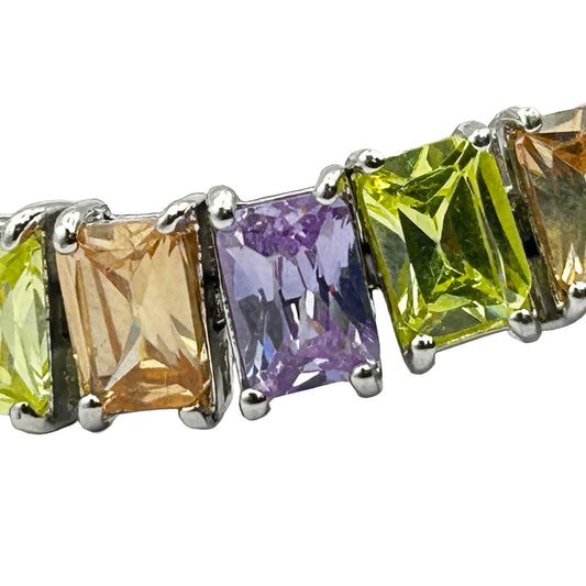 Colored CZ Rhodium Plated 925 Sterling Silver 7" Tennis Bracelet - 33 Stones