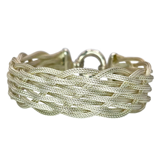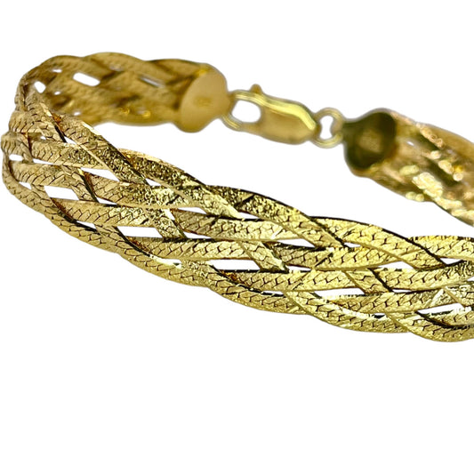 Italy 925 Sterling Silver Gold Vermeil Five Row Weave Bracelet Classic