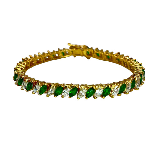 Sterling Silver Gold Vermeil Green White Marquise Cubic Zirconia Tennis Bracelet