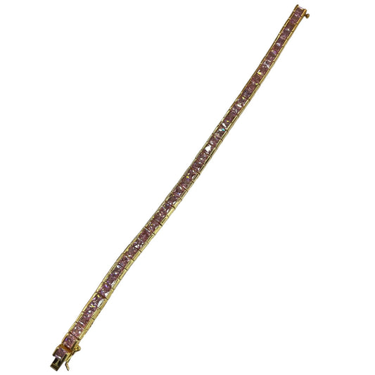 Sterling Silver Gold Vermeil Pink Ice Cubic Zirconia Princess Tennis Bracelet