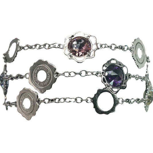 TACORI IV 925 Sterling Silver Multi Color CZ Gemstone 3-Strand Lotus Bracelet