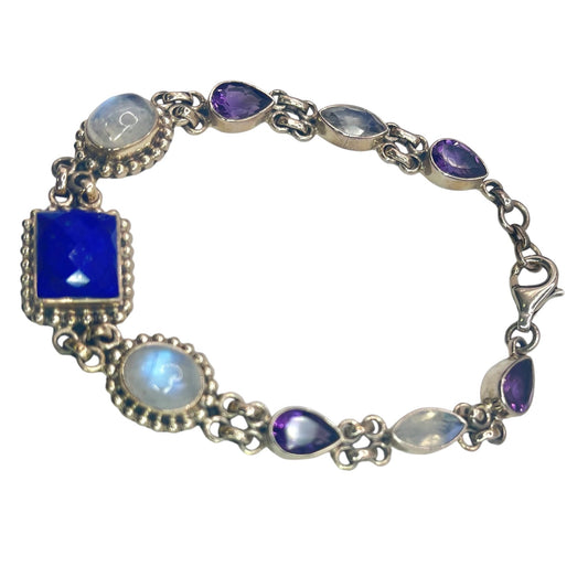 Nikki Butler Sterling Silver Link Bracelet Moonstone Amethyst Gemstone Colorful