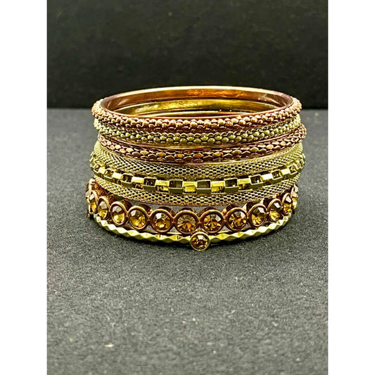 R.J. Graziano Gold Bronze Tone Metal Bangle Bracelets Set of 6 Mesh Mod Textured