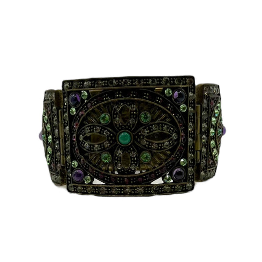 Heidi Daus Hinged Art Deco Wide Bracelet Crystals Bronze Tone Statement