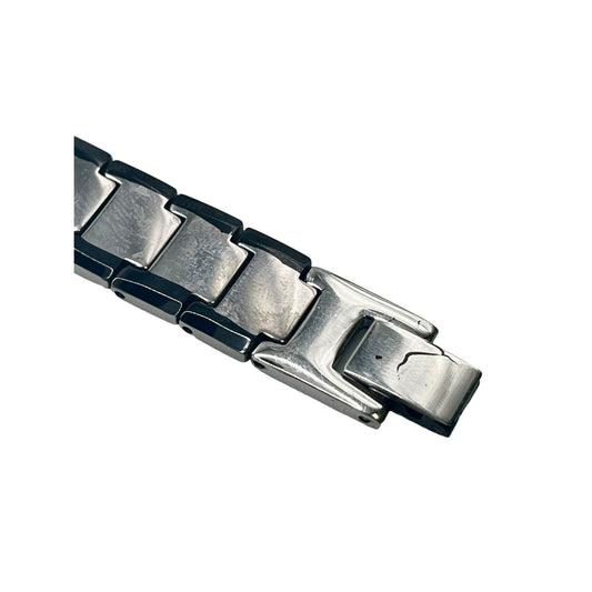 Men's Rectangular Link Two Tone Tungsten Bracelet Classic Silver Black