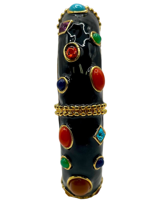 Kenneth J Lane KJL Black Enamel Jeweled Clamper Bangle Bracelet Colorful