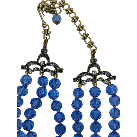 Heidi Daus Blue Purple Crystal Beaded Toggle Bracelet Necklace Set Statement