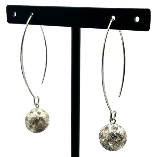 925 Sterling Silver Filigree Ball Dangle/Drop Hook Earrings