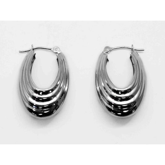 Ridged Oval Hoop Drop Earrings 14k White Gold JCM