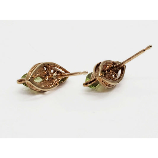 Marquise Natural Peridot & Diamond Accent Stud Earrings 10k Gold