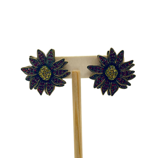 Heidi Daus Poinsettia Flower Crystal Clip on Earrings Pave Art Deco Colorful