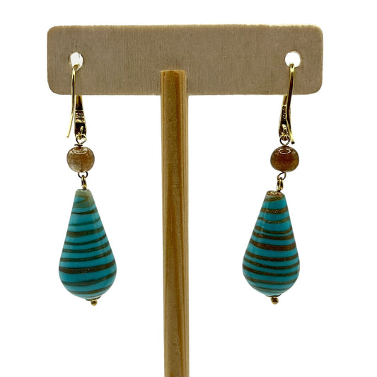 RCI Sterling Silver Gold Layered Teardrop Venetian Glass Dangle Earrings Italy