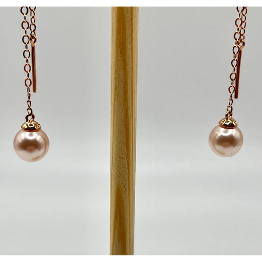 Ross Simons Sterling Silver Rose Gold Layered Dangle Faux Pink Pearl Earrings
