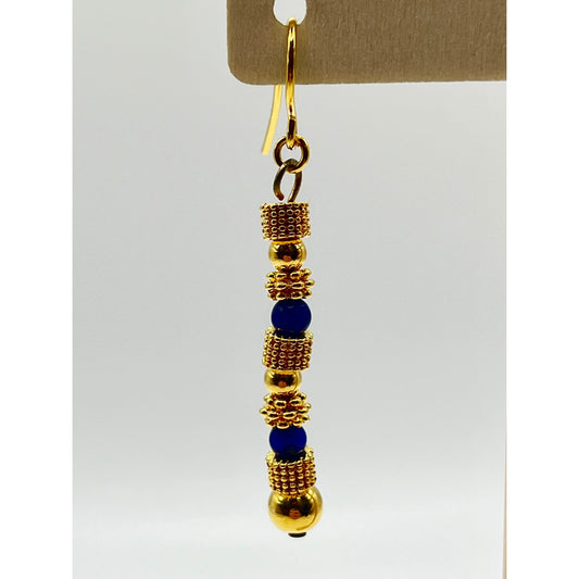 Gold Tone Totem Faux Lapis Drop Dangle Women's Earrings Fashion Colorful