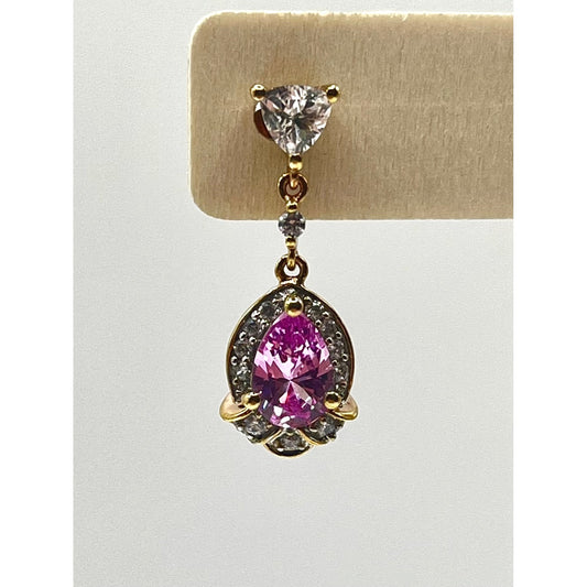 Veronica Wieck 925 Sterling Silver Pink Sapphire CZ Dangle Earrings Two Tone