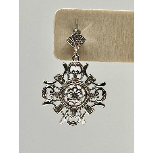 Victoria Wieck 925 Sterling Silver Drop Dangle Earrings Filigree Cubic Zirconia