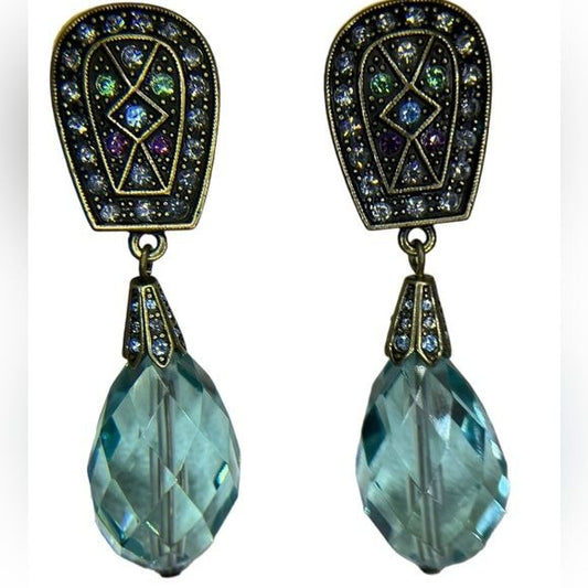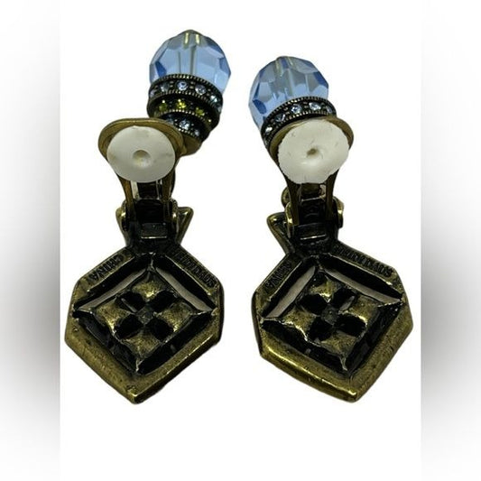 Heidi Daus Multicolor Crystal Faceted Blue Glass Dangle Womens Clip On Earrings