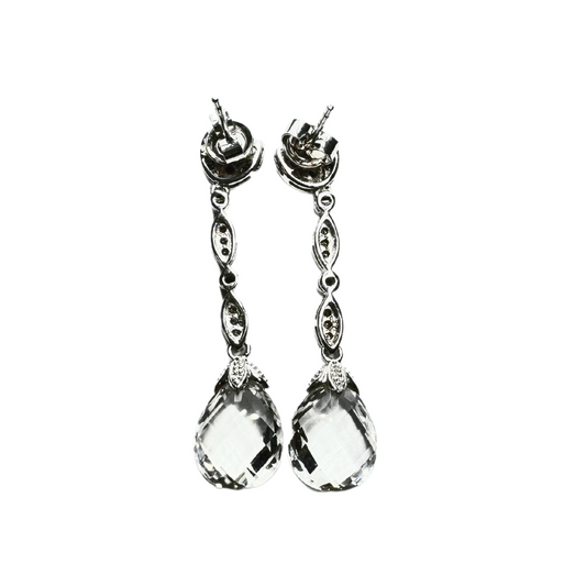 SS Marcasite Clear Crystal CZ Drop Post Earrings