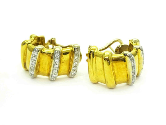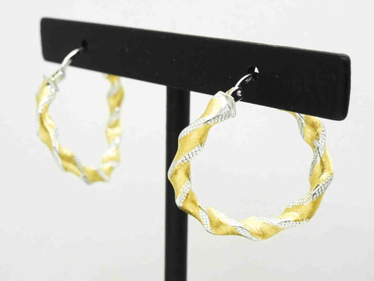 Italian Two-Tone Dia-Cut Twist Hoop Earrings 18k Yellow & White Gold