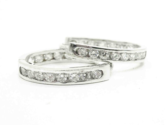 Kleo White CZ Inside-Out Hinged Hoop Earrings Sterling Silver