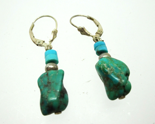 Vintage Turquoise Nugget Native American Sterling Silver Dangle Earrings