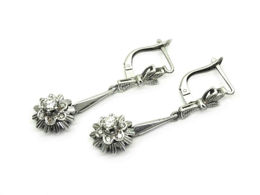 Mid-Century 0.54ct tw Diamond Flower Burst Dangle Earrings 14k White Gold
