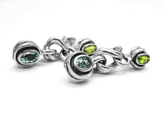 David Wysor Designer Aquamarine & Peridot Dangle Earrings Sterling Silver