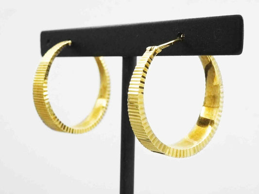 Wide Bottom Round Ridged Hoop Earrings 14k Gold