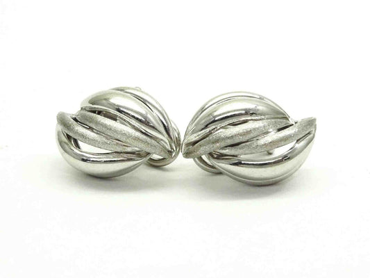 Italian Openwork Swirl Design Omega Earrings 14k White Gold 5.3 Grams