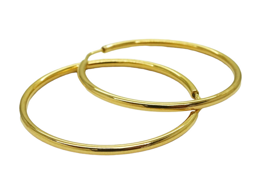 Thin 2mm Wide Hoop Earrings 18k Yellow Gold, 1.5" Hoops