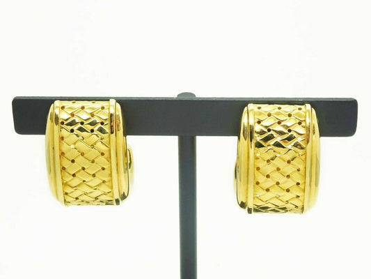 Le Gi Italian Designer Thick Weave J Omega Clip Not Pierced Earrings 18k Gold