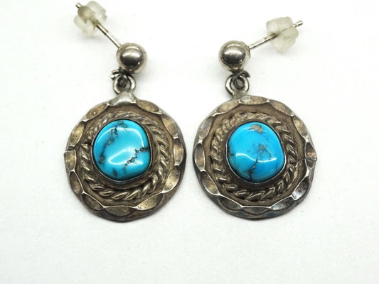 Vintage Signed Handcrafted Turquoise Nugget Dangle Earrings Sterling Silver