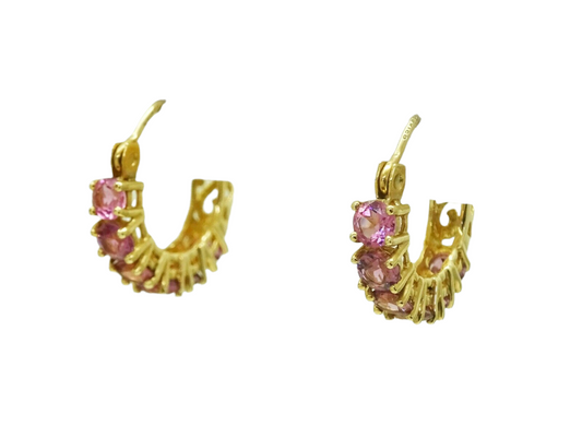 Pink Tourmaline Huggie Hoop Earrings 14k Gold Mexico