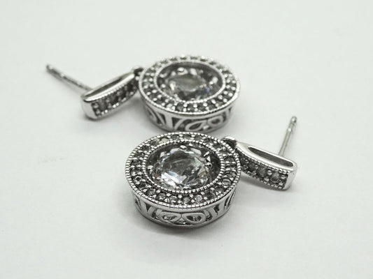 Round CZ Dangle Open Filigree Hoop Ring Drop Earrings Sterling Silver