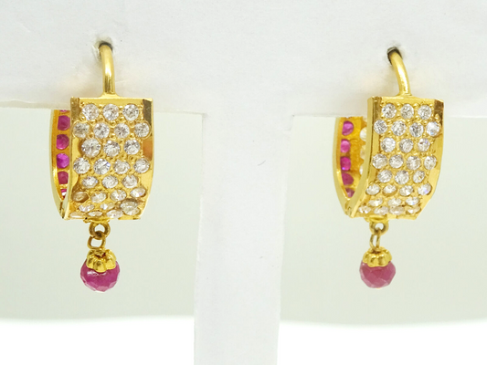 Reversible Synthetic Red & White Gemstone Huggie Dangle Earrings 22k