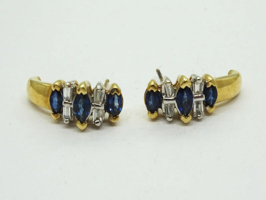 Marquise Sapphire & Baguette CZ "J" Drop Earrings 14k Gold