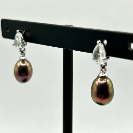 Dyed Freshwater Pearl Stud/Drop Earrings - 925 Sterling Silver & Cubic Zirconia