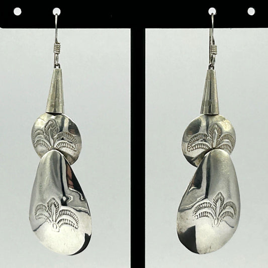 Sterling Silver Navajo Native American Concho Bead 2" Dangle Earrings - 7.4g