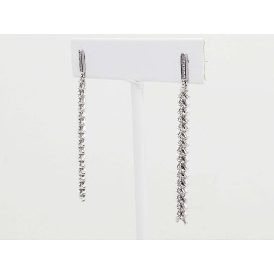 Natural Diamond Long Dangle Drop Earrings 14k White Gold SJM