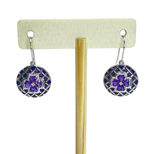 Ross Simons 925 Sterling Silver Floral Amethyst Dangle Earrings Colorful