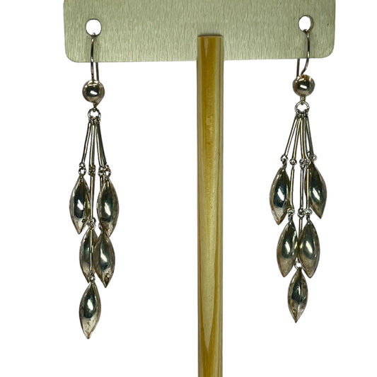Vtg Mexico Hollow Multi Drop Fringe Silver Earrings Long Dangle Drop Bohemian