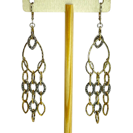 925 Sterling Silver Two Tone Gold Layered Marcasite Dangle Chandelier Earrings