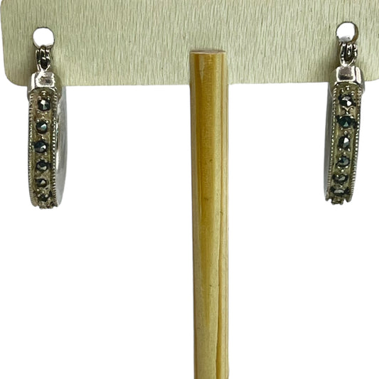 Silver Marcasite Womens Hoop Dangle Earrings Circular Round Classic