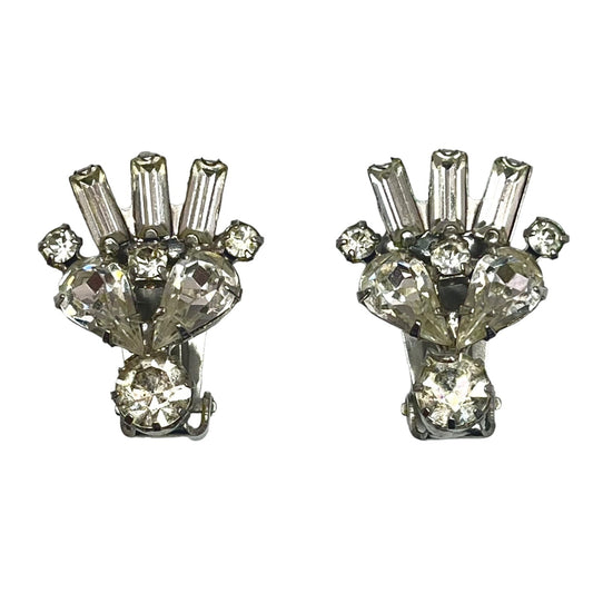 Vintage Weiss Rhinestone Clip-On Earrings Geometric Statement Chunky Non Pierced
