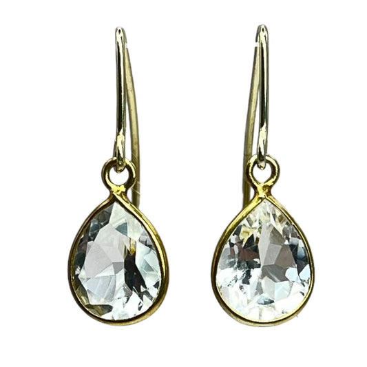 925 Sterling Silver Crystal Clear Drop Dangle Earrings Gold Tone Pear Teardrop