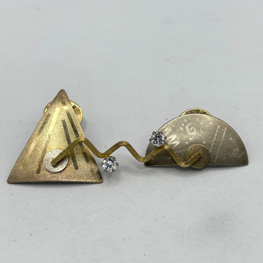 Keith Lewis KLS Geometric Modernist Kinetic Brooch 925 Sterling Silver with CZ