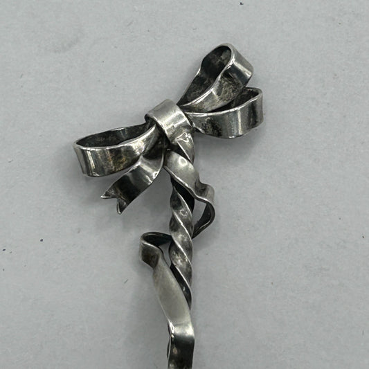 Vintage 925 Sterling Silver Twisted Ribbon Heart Bowl Demitasse Spoon - Monogram