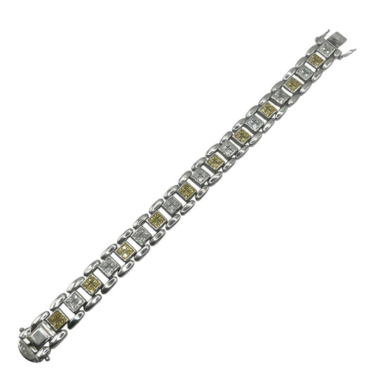 925 Sterling Silver 9" Tennis Bracelet with Square White & Yellow Cubic Zirconia