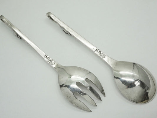 Mid Century Sanborns "Pea & Blossom" Sterling Silver Salad Servers 234 Grams