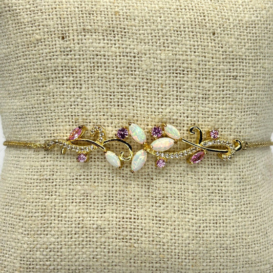 925 Sterling Silver Gold-Toned Opal, Pink Zircon and Pave CZ Slider Bracelet